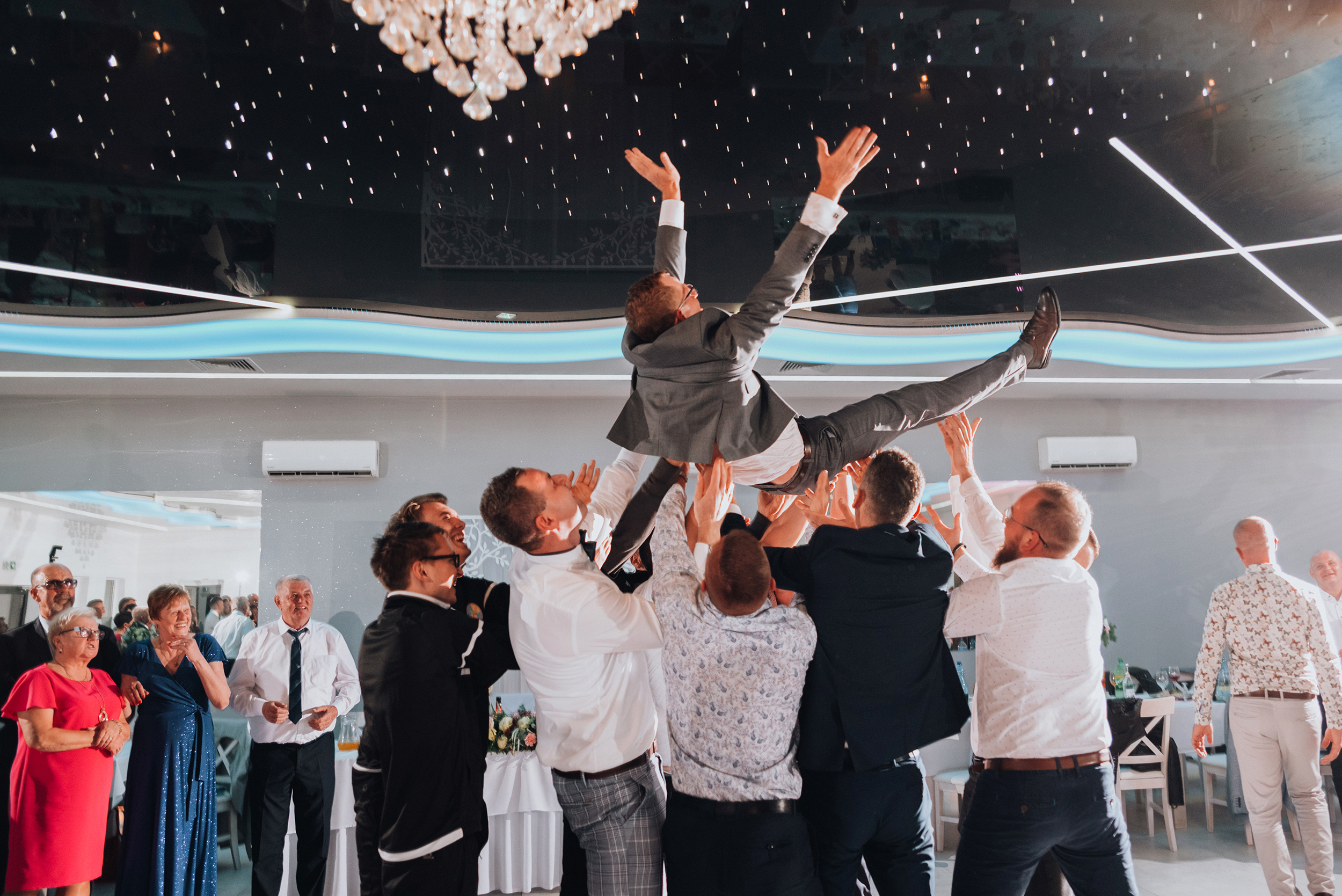 To był bardzo piękny październikowy dzień. Słońce pięknie nam świeciło choć wiatr wiał dość mocno. Bardzo czekałam na ten dzień, bo miałam okazję robić już zdjęcia w restauracji Morena w Starkowie i wiedziałam, że ten sufit zrobi niezłą robotę. Jak się okazało, największą robotę zrobili goście, bo dosłownie roznosili parkiet! Tutaj był zawsze pełen, tak świetnie się wszyscy bawili.